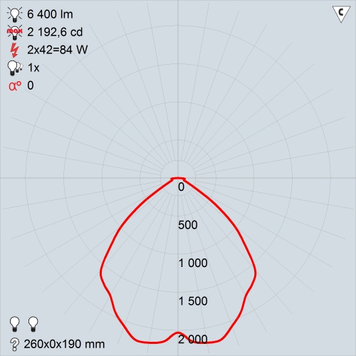 Во всех модификациях применен электронный ПРА, установленный на корпусе светильника. К дополнительному оборудованию, которым комплектуется часть изделий, относится блок аварийного питания, cosϕ>0,96. В корпусе размещается 1 или 2 КЛЛ, потребляющая от 13 до 42 Вт. Значение светового потока, который под воздействием отражателя распределяется над частью освещаемого помещения, составляет от 1200 до 6400 лм. Равномерное образование света (пульсации менее 3%) не напрягает зрительный аппарат.