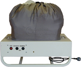 Работоспособность осветительной конструкции обеспечивается при подключении в однофазную сеть. Электроэнергия расходуется на работу вентилятора, заполняющего воздухом герметичный тканевый цилиндр – рассеиватель. При этом он разворачивается вверх, поднимая патрон с натриевой лампой. Источнику света свойственна высокая световая отдача, поэтому при потреблении 1000 Вт, создается световой поток, достаточный для заливающего освещения внушительных площадей. ЭмПРА входит в комплектацию, cosϕ>0,85.