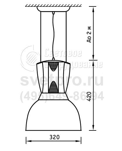 Монтаж светильника осуществляется с использованием тросового подвеса. Его длину можно регулировать в пределах 2-х метров.