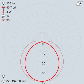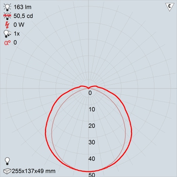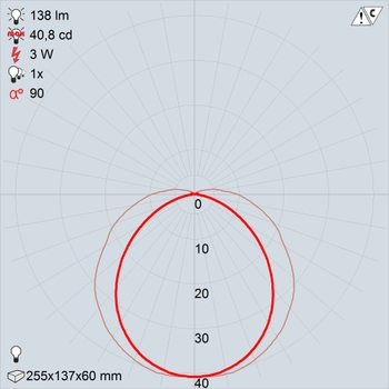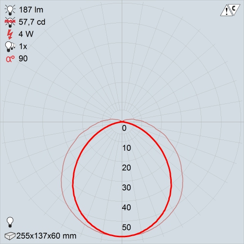 Поликарбонатный корпус и рассеиватель – не склонны к воспламенению. Поверхность рассеивателя может служить местом для размещения пиктограмм, являющихся дополнительным аксессуаром. Степень конструктивной защиты – IP22. О зарядке аккумуляторов свидетельствует светодиодная индикация, выведенная на панель.