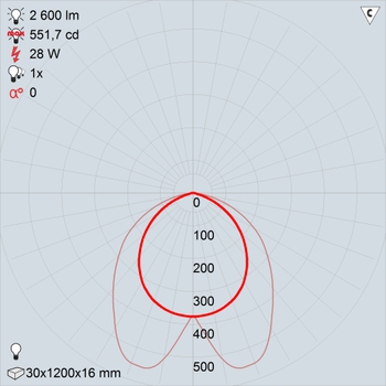 В модельном ряду изделия с лампой Т5, мощностью 14, 28, 35 Вт. В комплектацию входит ЭПРА. Увеличение мощности сопряжено с увеличением длины лампы и, соответственно, длины светильника: 675, 1275, 1575 мм. Ширина (153 мм) и толщина корпуса (45 мм) – неизменные параметры. При установке лампы отсоединяются торцевые кронштейны. Световое окно расположено по внутренней стороне корпуса, сто обеспечивает эффект отраженного света. Наличие ПРА не ведет к существенному снижению доли активно потребляемой электроэнергии, cosϕ>0,96.