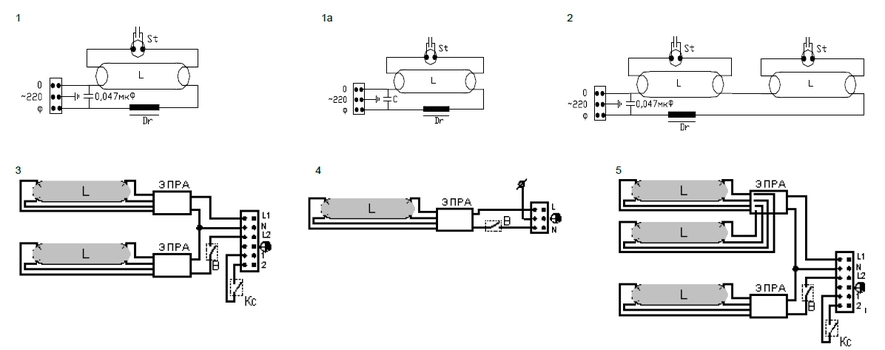 Схема подключения к питающей сети с регулируемым ЭПРА