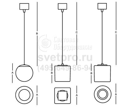 Модельный ряд построен на различных вариантах, относящихся к особенностям оптической системы. Различна форма рассеивателя: шар (Ø 115 мм), куб (сторона 105 мм), цилиндр (Ø 110 мм, высота – 110 мм) и количество идентичных оптических систем, входящих в состав одного осветительного прибора: 1, 3, 4, 5. Неизменна мощность применяемых модулей – 8 Вт, обязательное наличие драйвера.