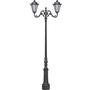 Декоративные опоры имеют небольшую высоту и доступную стоимость, красивый дизайн. Их часто применяют для строительства систем освещения частных территорий, дачных участков.