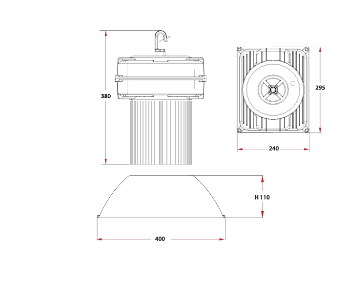 Мощный, литой корпус из прочного алюминия, окрашенного антистатической краской, стойкой к окислению и коррозии, алюминиевый купол, радиатор, источник света суперяркий светодиод и драйвера .