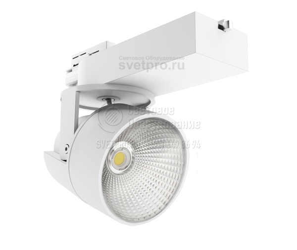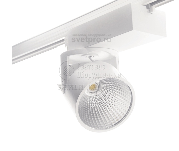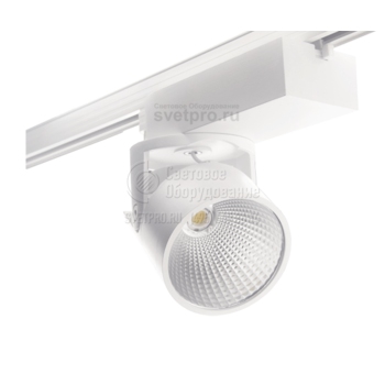 Трековый LED-светильник со светодиодом мощностью 30 Вт. Литой алюминиевый корпус c охлаждающим радиатором. Отражатель с металлическим напылением. Рассеиватель из прозрачного стекла. В комплект входит драйвер, светодиод, коннектор для шинопровода. Угол поворота светильника по горизонтальной оси 86° и 355° по вертикальной оси.