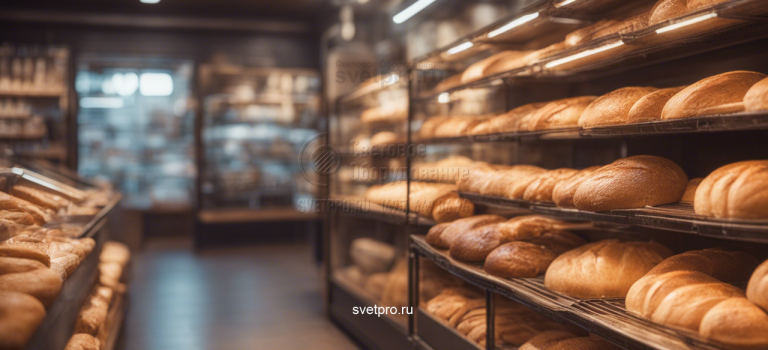 Специализированный магазин редко бывает большим. Благодаря наличию компактного хлебопекарного оборудования магазины торгуют не только хлебом, разработанным и выпекаемым на хлебозаводах, но и созданным по собственной рецептуре. Но желающих печь немало, а суметь наладить эффективную торговлю хлебом значительно меньше. Да и срок его реализации короткий. Поэтому покупателя можно заинтересовать дегустациями, ароматными запахами, дополнительными услугами, к примеру нарезкой, приемом заказов и, конечно же, теплом, которое в значительной мере зависит от освещения торгового зала. Тепло встретит вошедшего в зал мягким, ровным, слегка желтоватым светом. Это не будет полумрак, ведь света должно быть достаточно, к тому же существуют нормативы освещенности торговых залов. Это будет заливающий свет, позволяющий оценить интерьер магазина и места, отведенные для представления продукции.