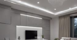 - Скрытая. Для создания скрытой подсветки используются световые приборы, которые не видны на фасаде. Они устанавливаются внутрь фасадных элементов, под фасадные панели или встраиваются в стены дома. Позволяют создавать уникальные проекты освещения с необычными дизайнерскими решениями.