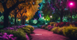 Полностью осветить массивы зеленых насаждений невозможно, да и ни к чему. Освещаются только отдельные деревья, группы растений, цветники, альпийские горки, Лучи света превращают их в настоящие арт-объекты. Акцентная подсветка создается с помощью прожекторов, установленных на земле или на подставках. Для живой зелени подходят источники света с цветовой температурой около 4000 К. Их нейтральный или холодный белый свет, близкий к дневному, не искажает колорит зеленой листвы и красоту цветов.