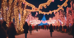 Зимняя сказка, созданная искусственным светом в парке отдыха