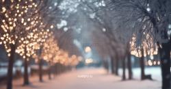 Зимняя сказка, созданная искусственным светом в парке отдыха