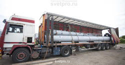 Общая длина пакета с опорами не может быть больше 12,5 метра. Поэтому стволы длинных опор делаются из нескольких секций, которые затем собираются в единое изделие уже на месте монтажа.