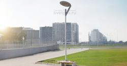 - Совместимость со стандартными светильниками. Диаметр верхней части ствола и консолей кронштейнов делается универсальным, чтобы подходить под посадочные отверстия торшерных светильников независимо от размера и формы отражателей. Благодаря этому покупатель может отдельно подбирать СП, кронштейны и корпуса опор. Можно создать уникальную систему освещения с учетом личных предпочтений и стилистики оформления площадки.