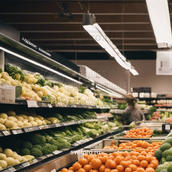 Работа магазинов, осуществляющих продажу пищевых продуктов, организована по длительному графику, а порой и круглосуточно. Разумеется, что в таких магазинах не избежать использования осветительных приборов. Они обеспечивают общий световой фон в помещении и применяются для акцентной подсветки товаров. Более значимое воздействие на предлагаемый ассортиментный перечень оказывает акцентное освещение, поскольку световые приборы располагаются вблизи товара. Однако не стоит игнорировать и влияние общего света.