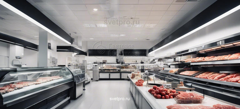 Искусственное освещение магазинов, реализующих продовольствие, должно ограждать продукцию от отдельных негативных моментов, сопровождающих применение света. Наиболее благоприятен, а значит, любим в данном контексте, светодиодный свет.