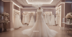 Свадебный салон требует освещения лампами с нейтральной цветовой температурой, которые устанавливаются в различные виды светового оборудования и создают общее заливающее освещение, а также акценты на наиболее востребованных или дорогих моделях свадебных платьев.