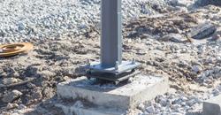 - Закладная деталь заливается бетоном. Марка строительного раствора указывается в проекте осветительной сети, составленной до начала строительства. Уровень раствора должен совпадать с уровнем земли, опорная площадка немного возвышается над ней. Одновременно с бетонирование закладной элемент выравнивается по вертикали.